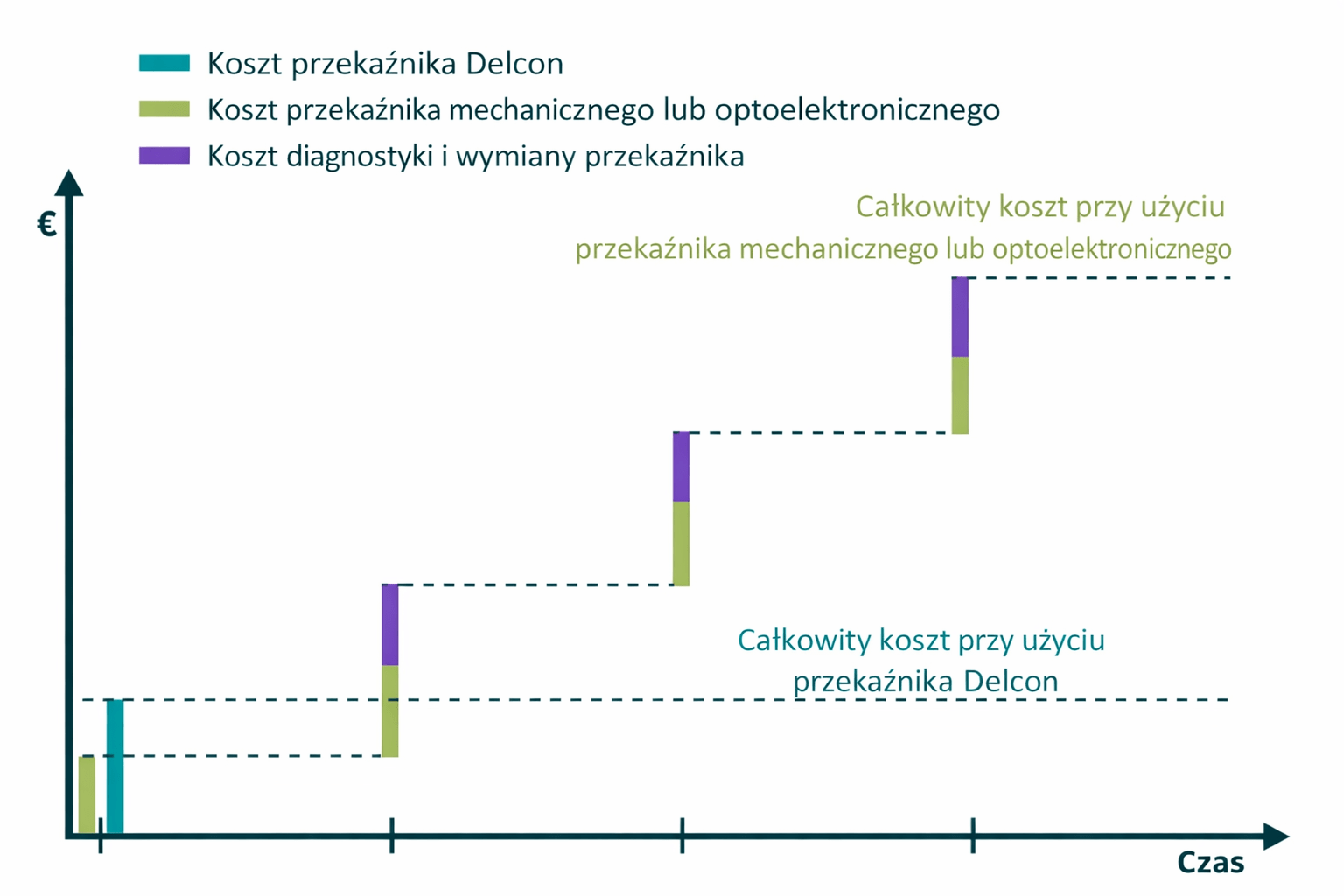 Cena przekaźnika to tylko ułamek jego rzeczywistego kosztu. Kluczowe jest ogólny koszt posiadania (TCO). Jeden uszkodzony przekaźnik za 20 EUR może zatrzymać linię produkcyjną i spowodować straty w wysokości kilku tysięcy dolarów – nie tylko ze względu na utratę produkcji, ale też na koszty diagnostyki, interwencji serwisowej i ryzyko utraty zaufania klienta.