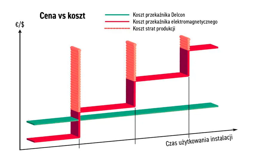 Wspomniane obciążenia indukcyjne czy przełączanie napięć DC wpływają bardzo niekorzystnie na żywotność standardowych przekaźników. Obciążenia indukcyjne to przede wszystkim sterowanie elektrozaworami czy stycznikami silnikowymi. W zależności od ich wartości i częstotliwości łączeń należy się liczyć z ryzykiem sklejenia się styków przekaźnika.