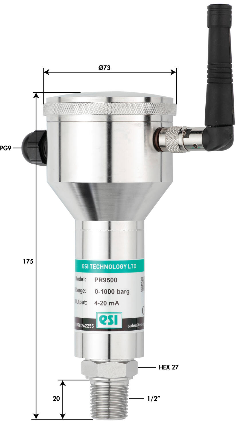 Przetwornik z serii PR9500 – będący jednocześnie nadajnikiem, może być montowany w trudnodostępnych i nieokablowanych strefach. Przy stosowaniu z dedykowanym odbiornikiem RX9500 wartość mierzona ciśnienia może być przekazywana zdalnie na odległość nawet do 500 m. Produkt zapewnia stabliność w szerokim zakresie temperatury. Zakresy pomiarowe ciśnienia to w zależności od wariantu: 0-0,5 bar, aż do 0-1500 bar.